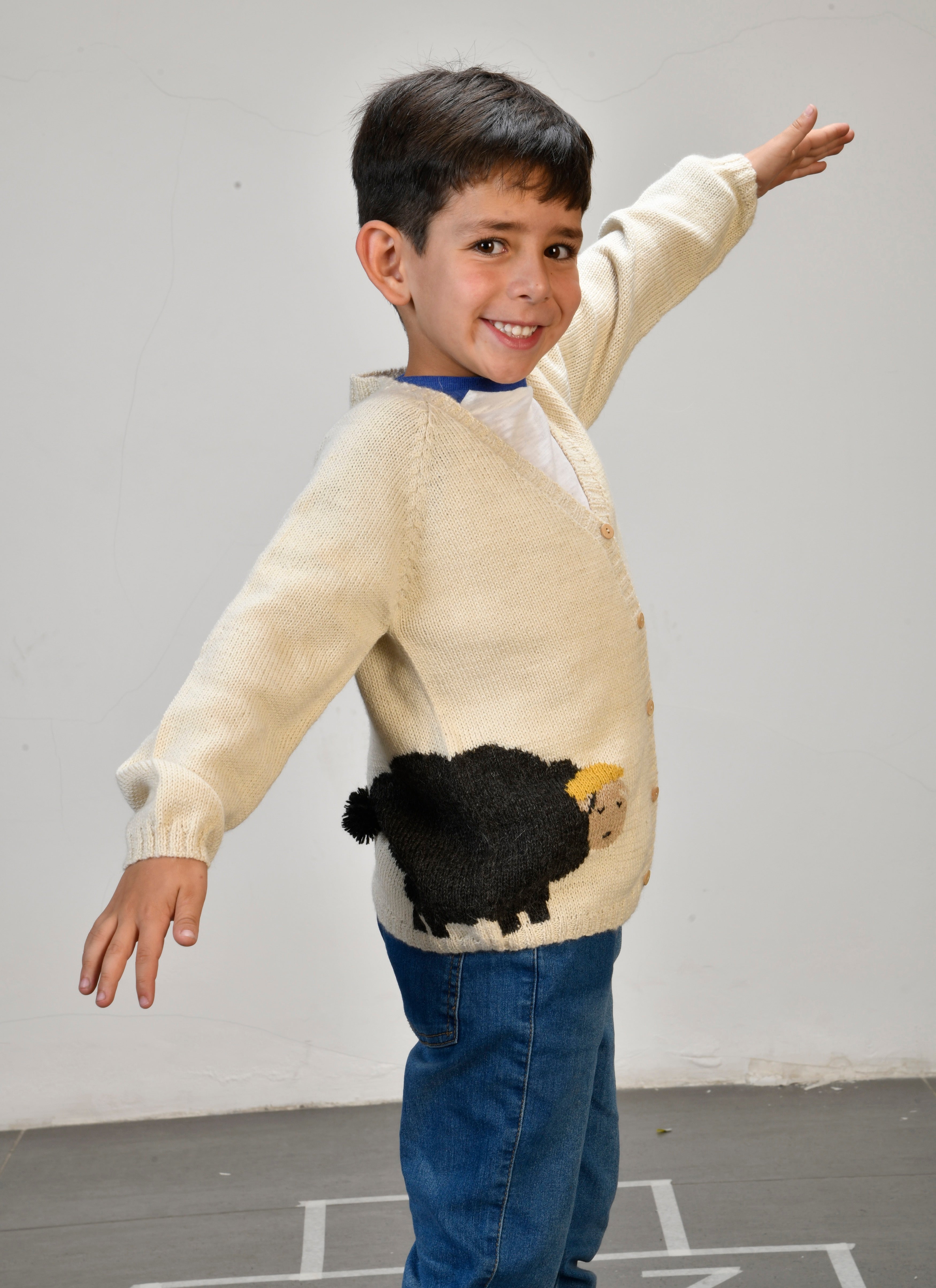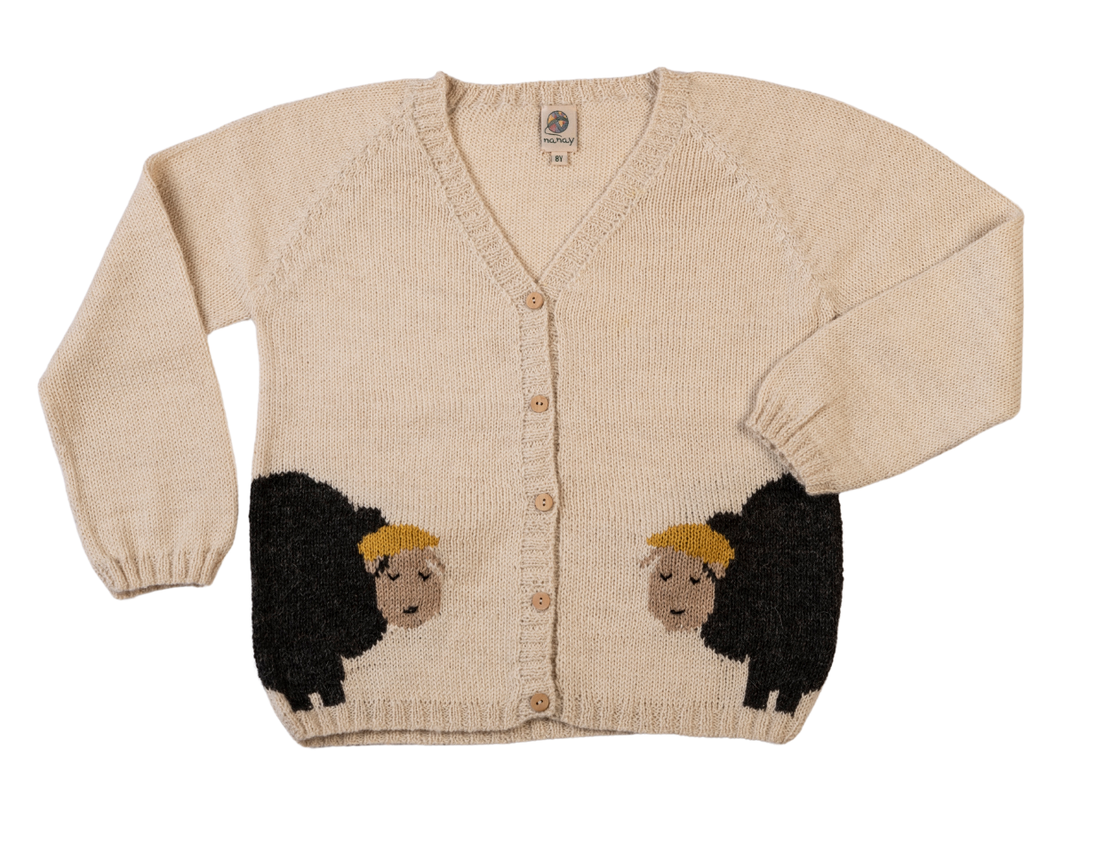 Each cardigan features adorable little lamb designs on the front and back — inspired by the playful lambs that roam the Bolivian highlands. With tiny tails and gentle details, these designs capture the innocence and joy of childhood while bringing a touch of nature’s charm to every outfit.