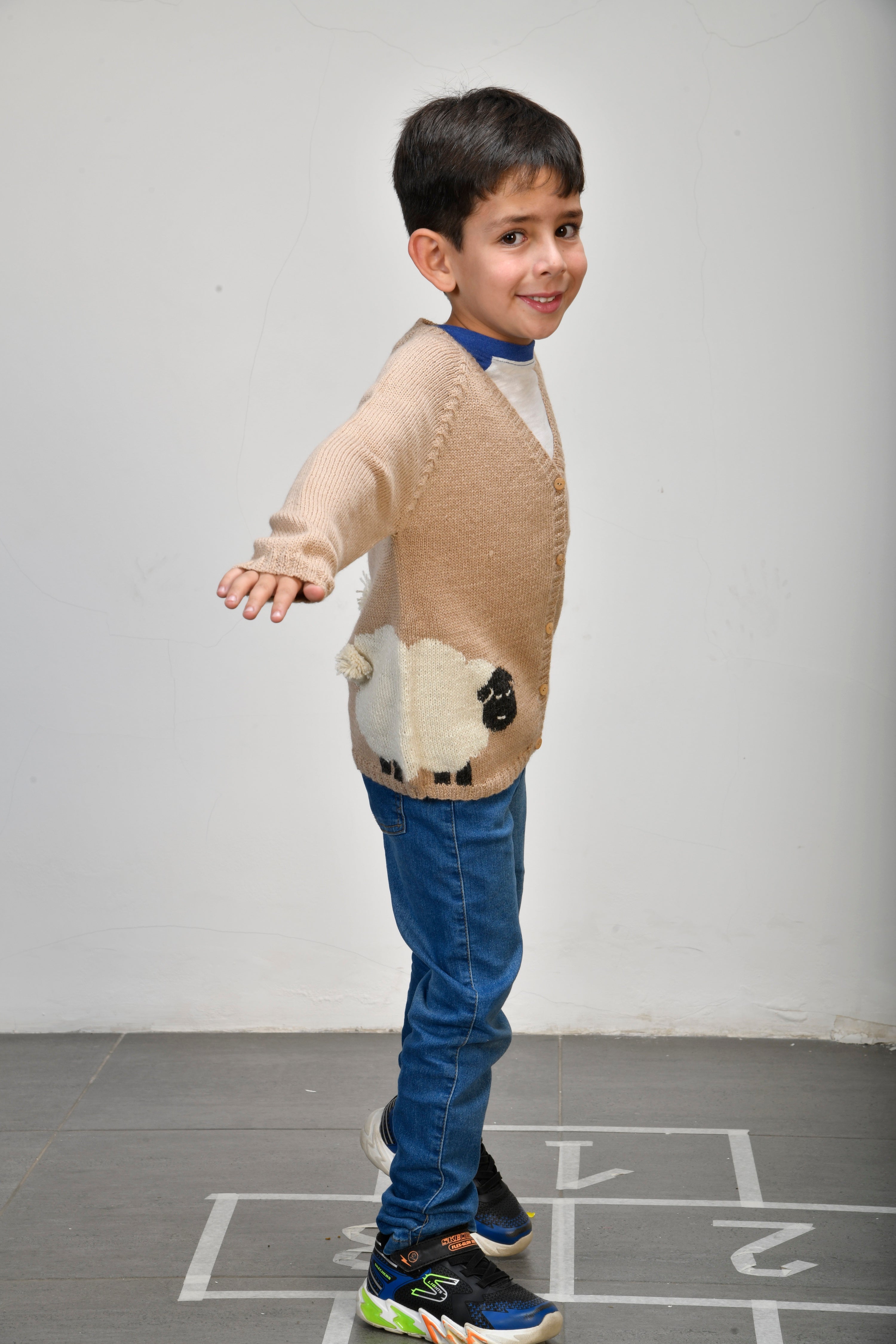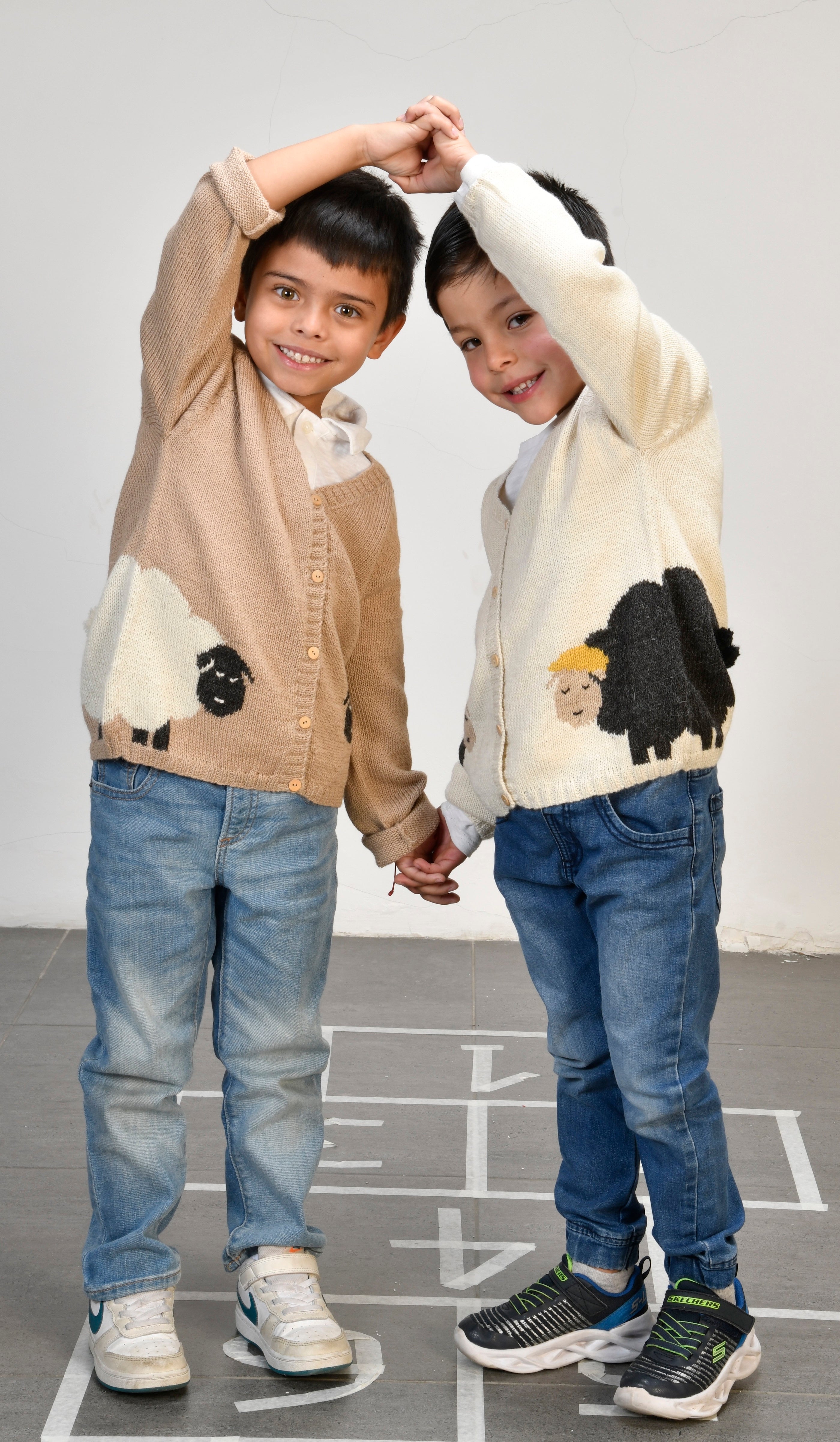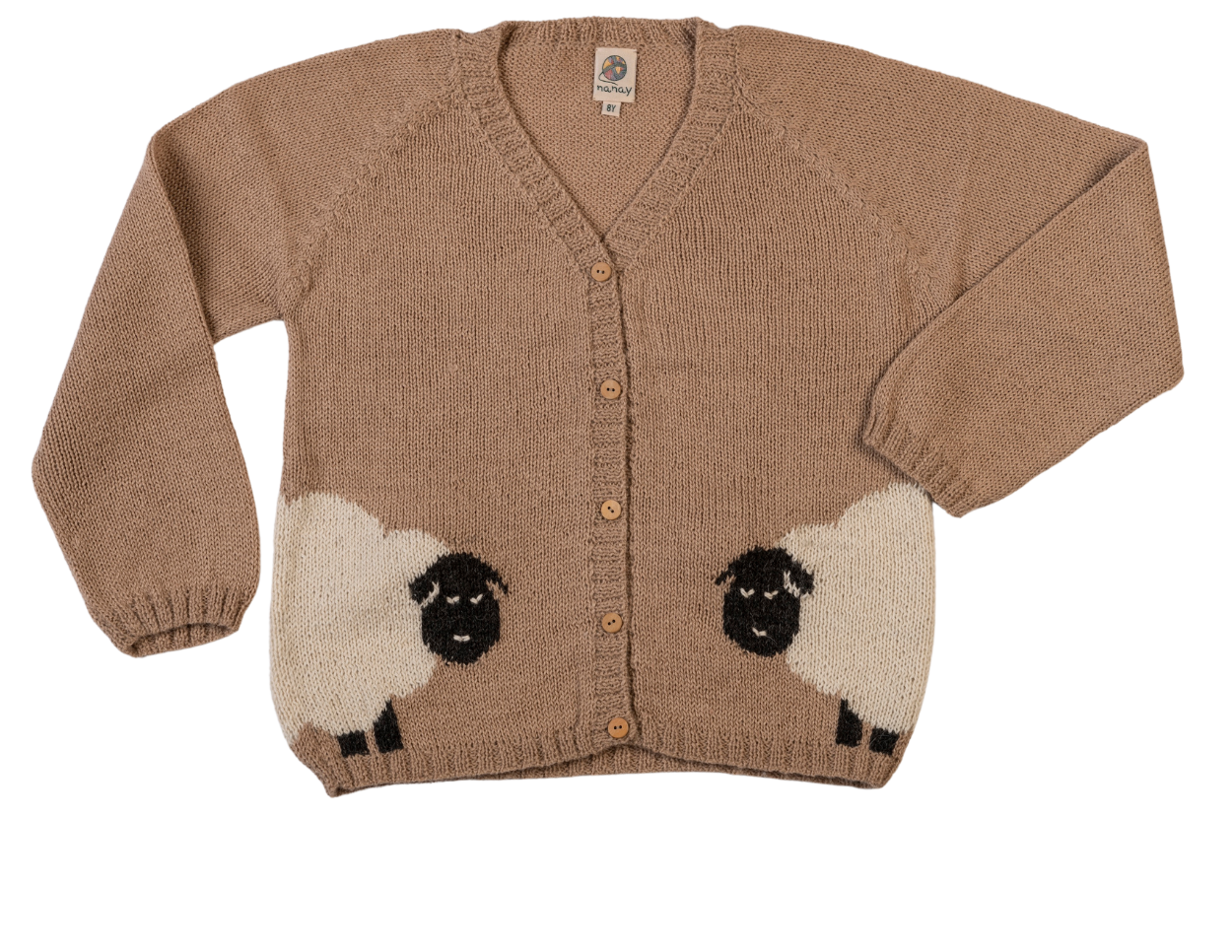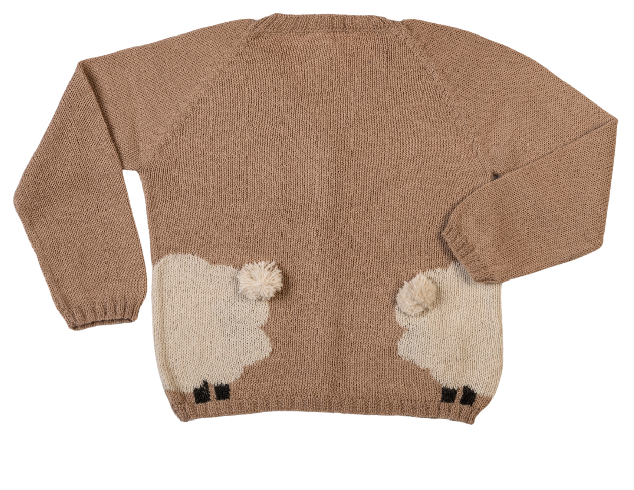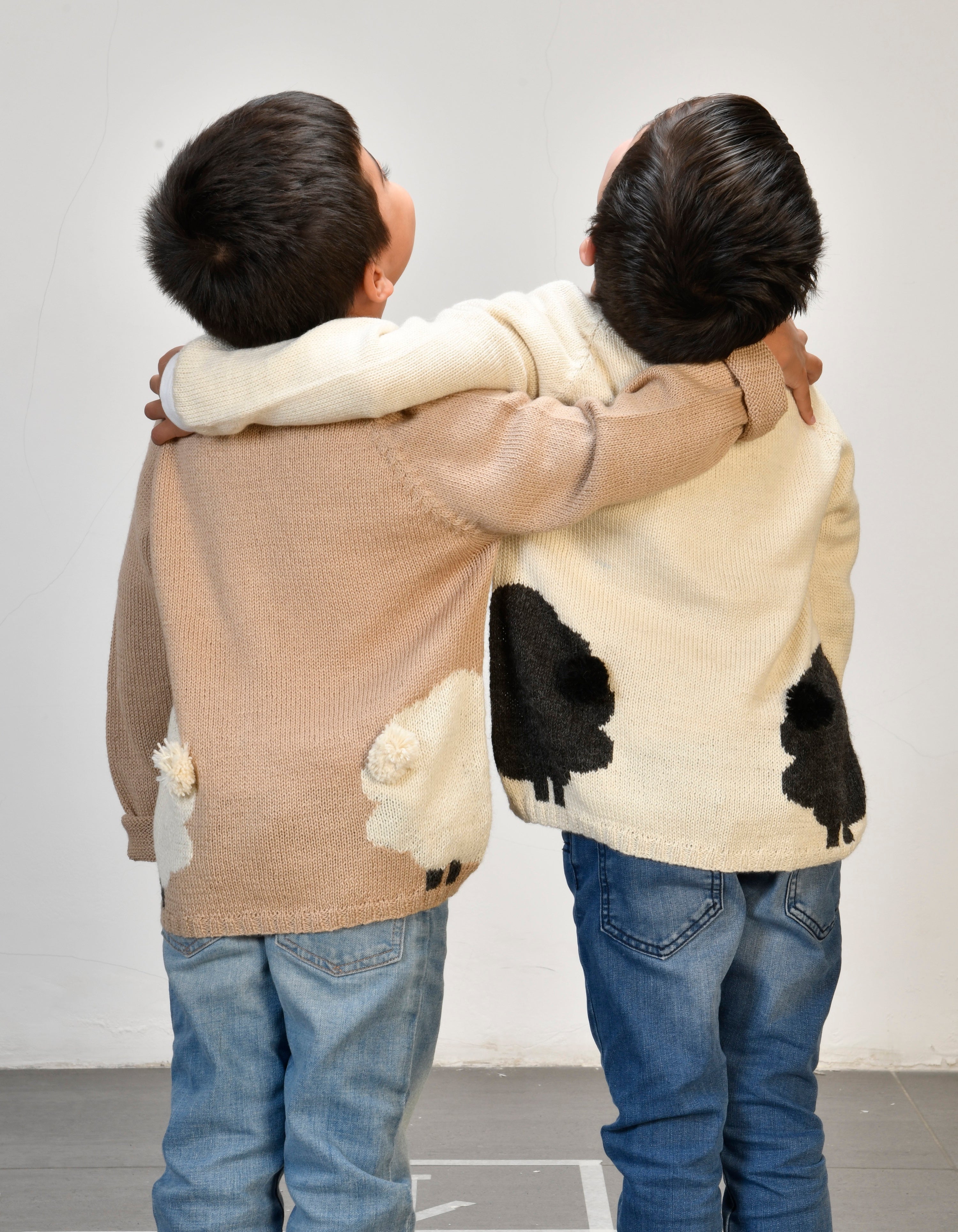 Each cardigan features adorable little lamb designs on the front and back — inspired by the playful lambs that roam the Bolivian highlands. With tiny tails and gentle details, these designs capture the innocence and joy of childhood while bringing a touch of nature’s charm to every outfit.