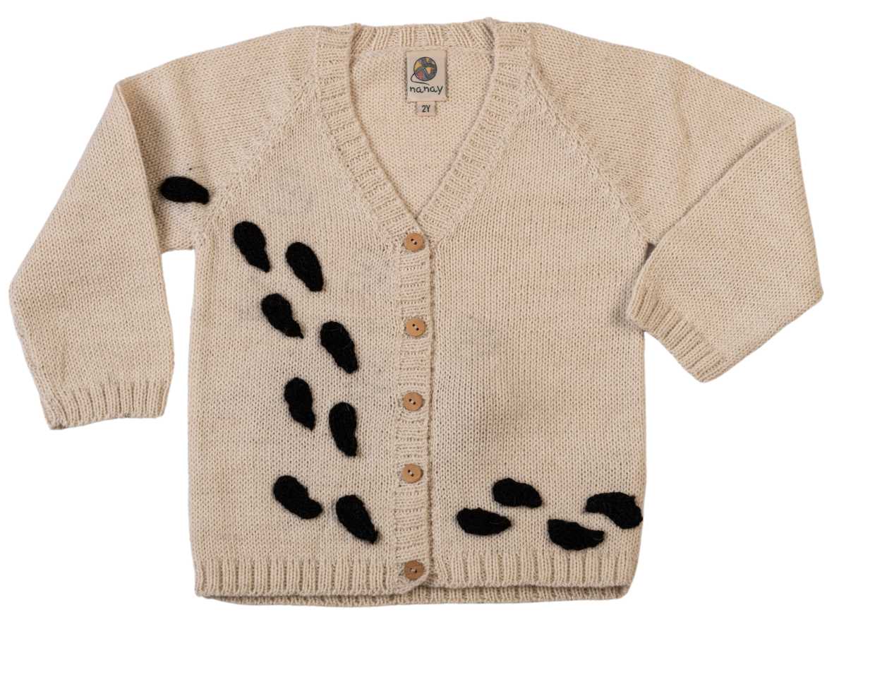 Each cardigan features adorable little lamb designs on the front and back — inspired by the playful lambs that roam the Bolivian highlands. With tiny tails and gentle details, these designs capture the innocence and joy of childhood while bringing a touch of nature’s charm to every outfit.
