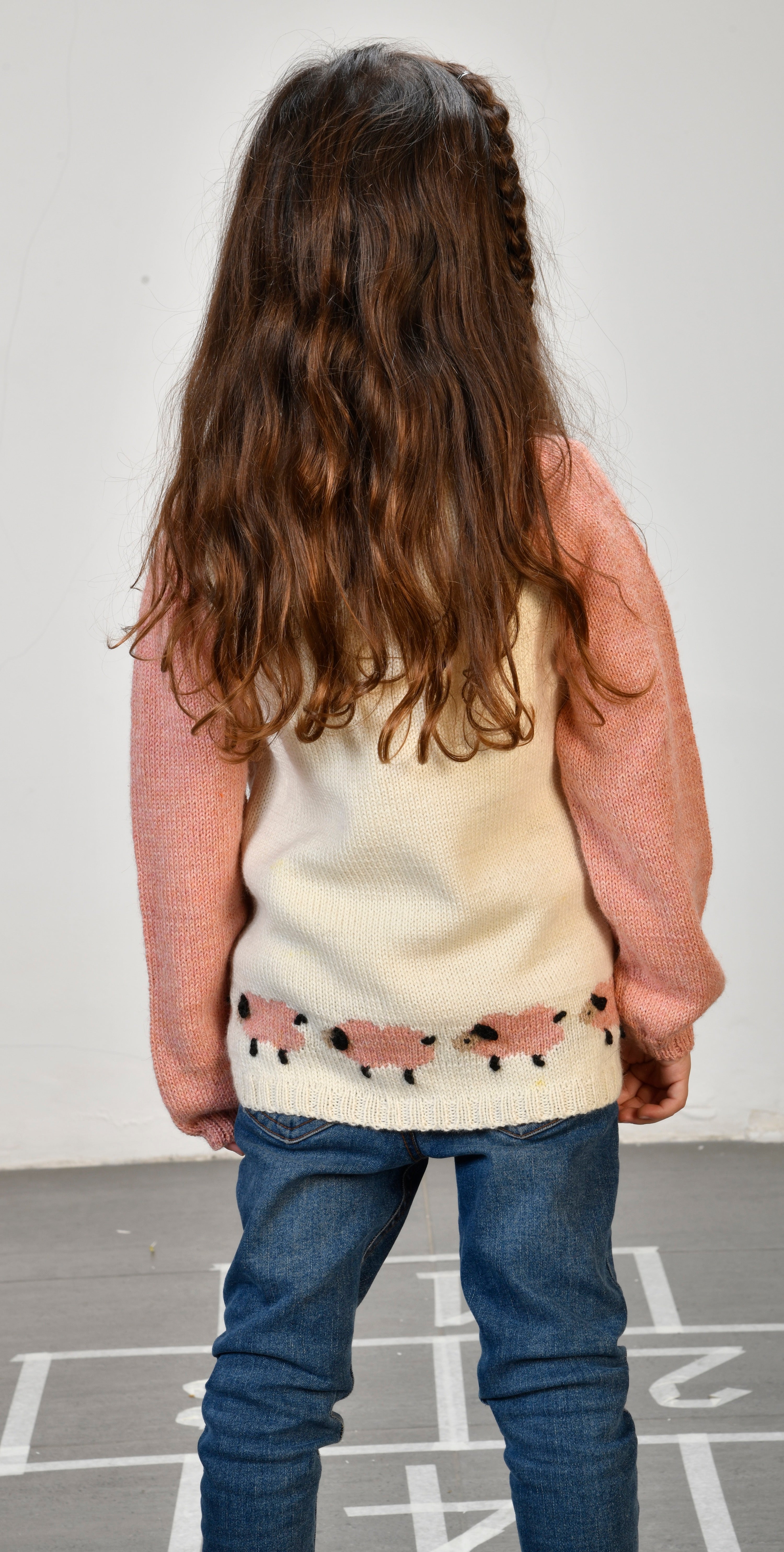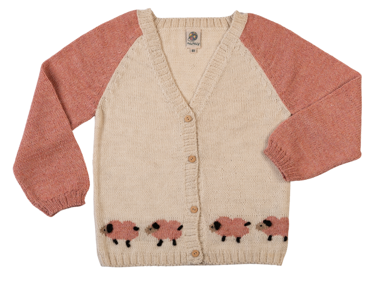 Each cardigan features adorable little lamb designs on the front and back — inspired by the playful lambs that roam the Bolivian highlands. With tiny tails and gentle details, these designs capture the innocence and joy of childhood while bringing a touch of nature’s charm to every outfit.