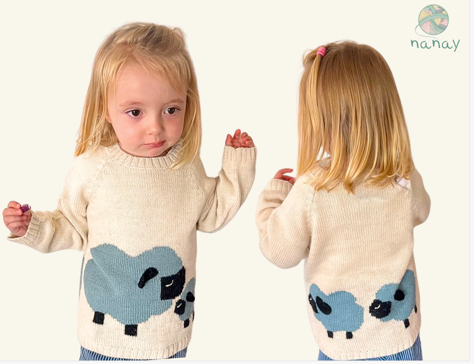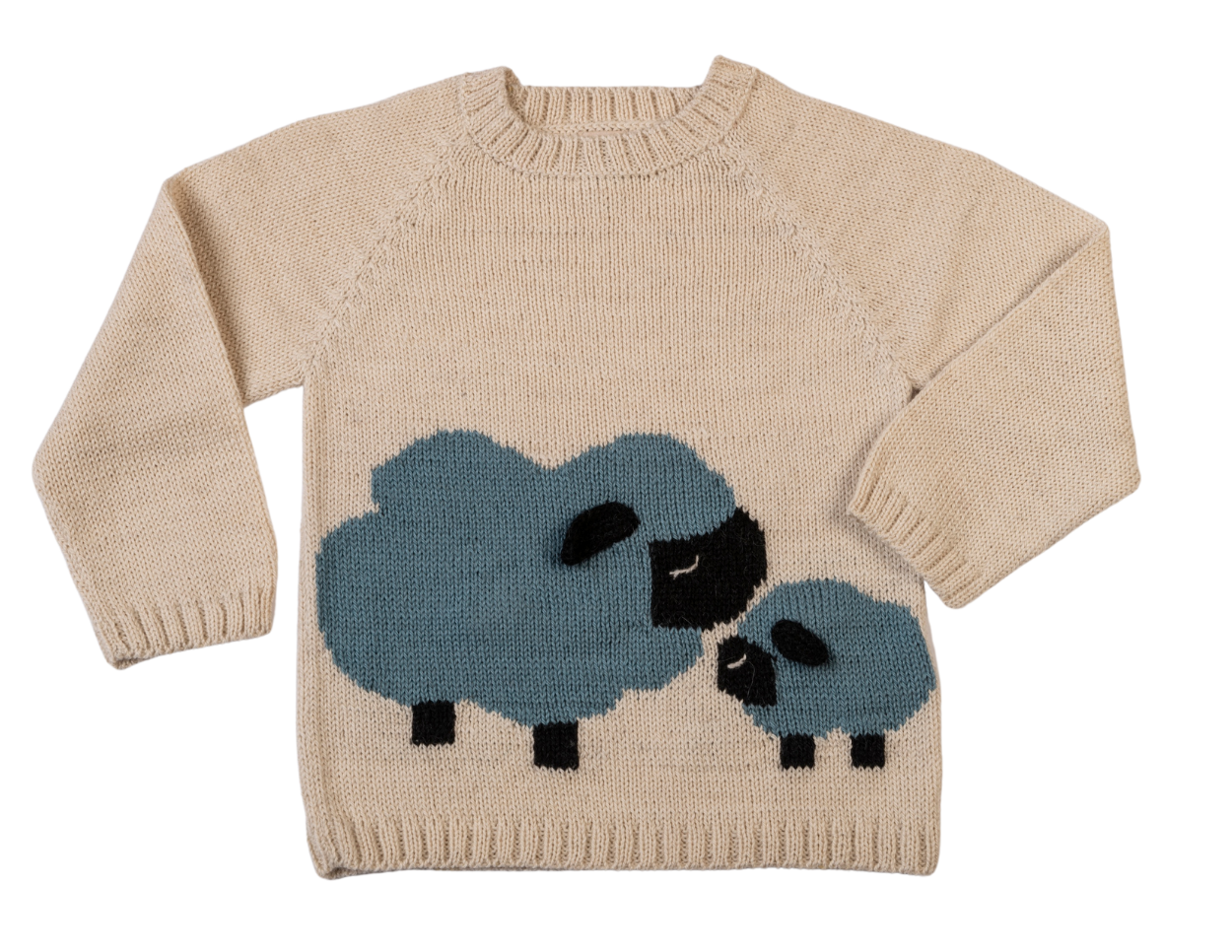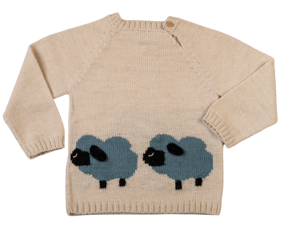 Each sweater features adorable little lamb designs on the front and back — inspired by the playful lambs that roam the Bolivian highlands. With tiny tails and gentle details, these designs capture the innocence and joy of childhood while bringing a touch of nature’s charm to every outfit.